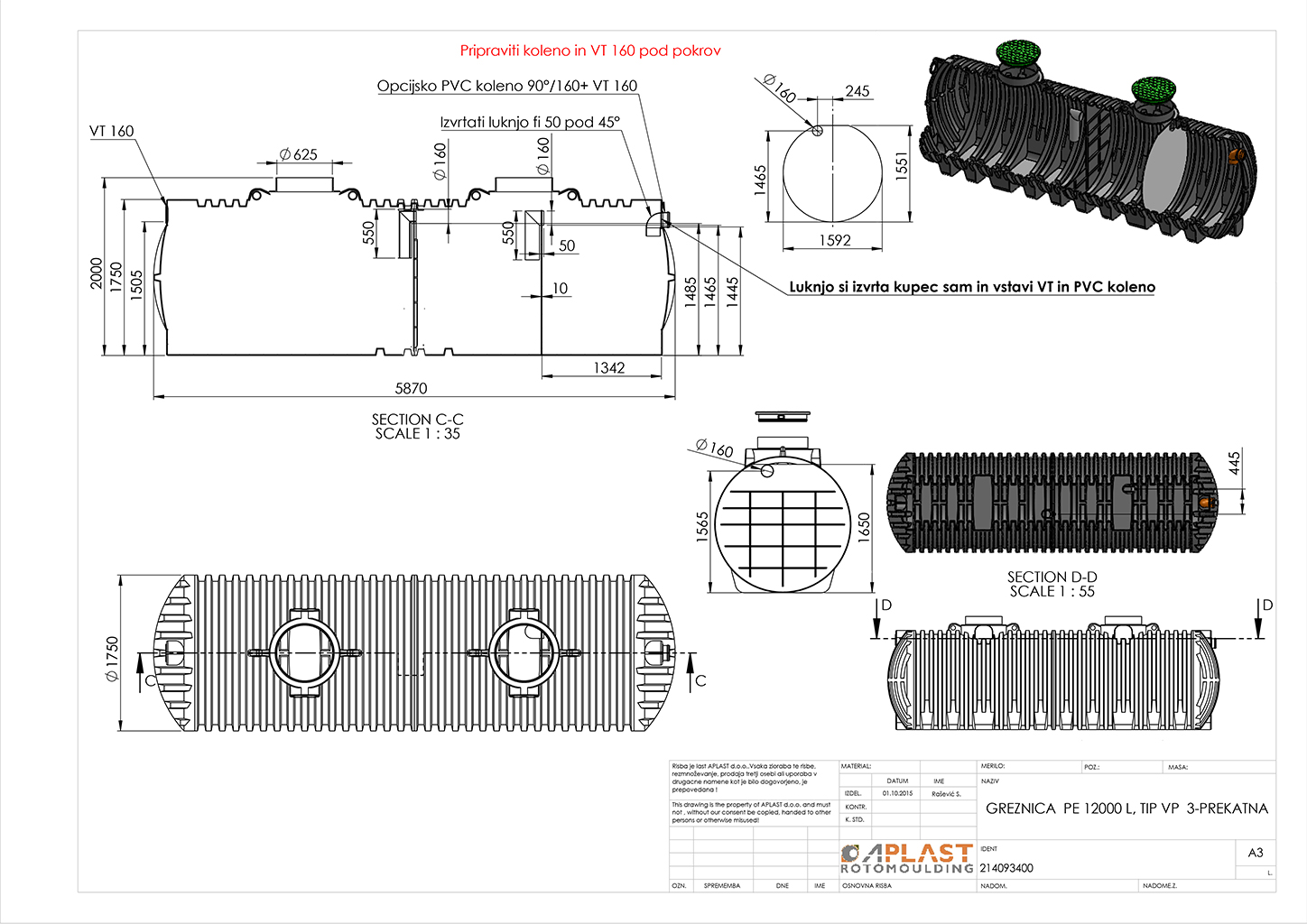 Septička jama služi za fekalne otpadne vode stambenih, poslovnih, ugostiteljskih, sportskih i svih drugih objekata na lokacijama gdje nema javne kanalizacije. Proizvedena je u monolitnoj izvedbi, s jedan ili dva otvora za kontrolu i pražnjenje, ovisno o volumenu. Rotaciom lijevani polietilen rebrastog profila omogućuje ugradnju izravno u teren bez potrebe za dodanim učvršćivanjem i betoniranjem (iznimni slučajevi: klizišta, podzemne vode, kolni ulazi i parkirališta – slijediti upute za montažu.